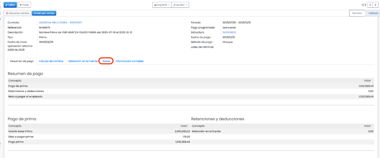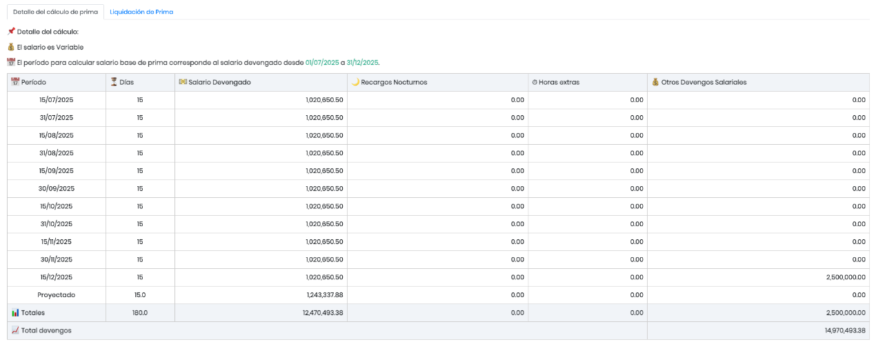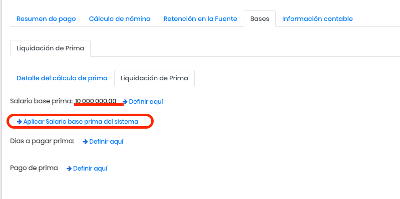 Ingresa en la pestaña "Liquidación de prima" , y modifica manualmente cualquiera de los valores calculados por el sistema.
