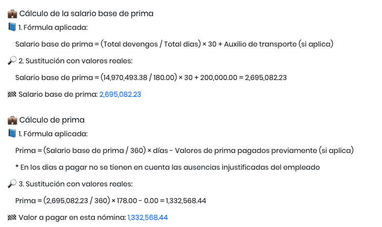 En la seccion "Pago de prima" encontrarás 3 variables calculadas por el sistema: