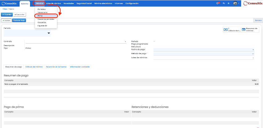 • Ingresa al  módulo de Nómina  y busca el menú "Prima".